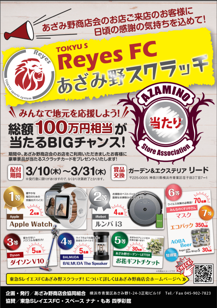 【賞品交換 締め切りました】東急SレイエスFC あざみ野スクラッチ開催