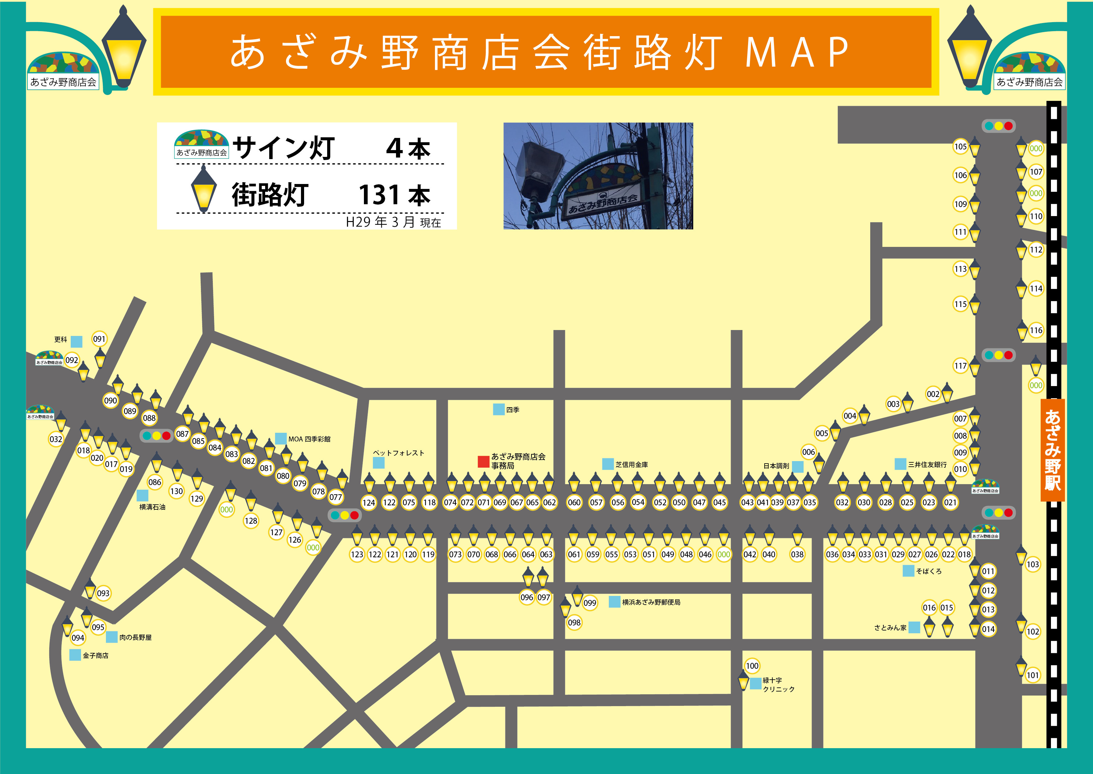 あざみ野商店会では、地域の安全を確保する意味においても、防犯対策・町の安心につながるように、約140本の街路灯の設置・保守管理・メンテナンスを定期的に行っております。 地域の安全につながる活動です。ご理解の上、お気付きの点などございましたら、お気軽に「あざみ野商店会協同組合事務局」まで、ご連絡ください。 共有:Tweetいいね 読み込み中…